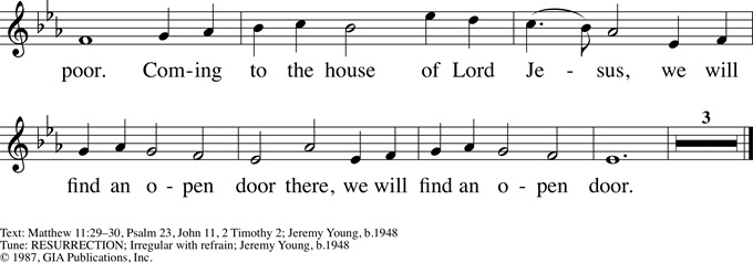 Text: Matthew 11:29-30, Psalm 23, John 11, 2 Timothy 2; Jeremy Young, b.1948, © 1987, GIA Publications, Inc.